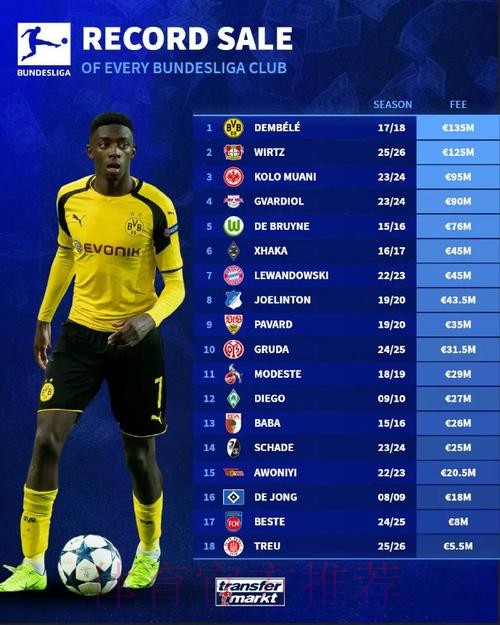 德转统计西甲20队引援标王:登贝莱1.35亿居首